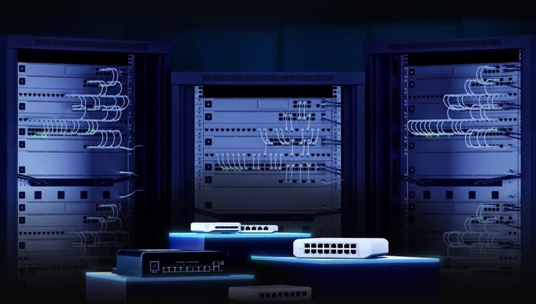 Somos especialistas em soluções Ubiquiti UniFi, com Wi-Fi de alta cobertura, redes cabeadas e segmentação inteligente (VLANs). Implementamos balanceamento de links, failover automático e priorização de tráfego para garantir internet sempre disponível.